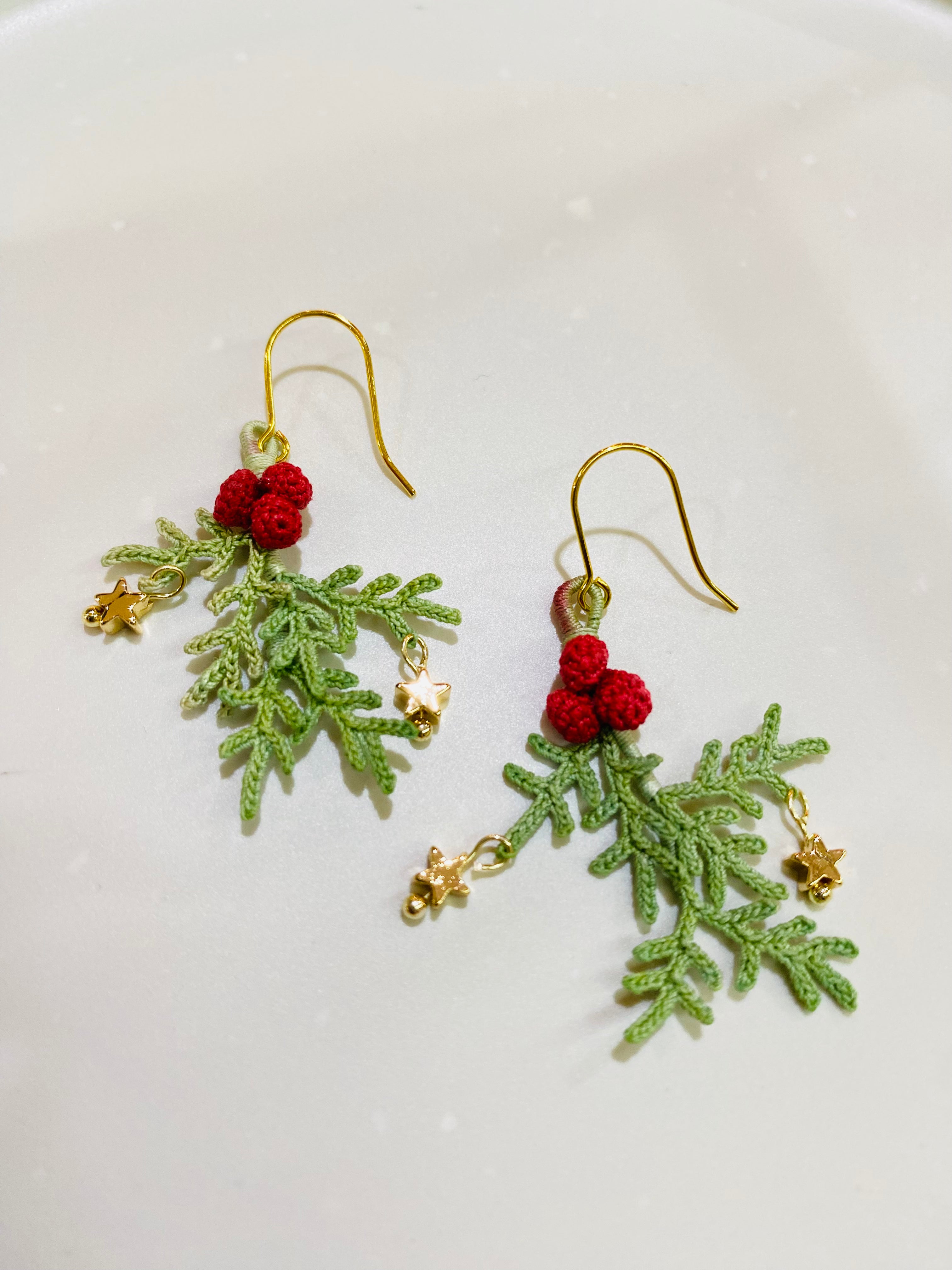Bring a touch of Christmas magic with these tiny handcrafted micro-crochet Christmas Holly earrings. Lightweight, festive and gift-ready.