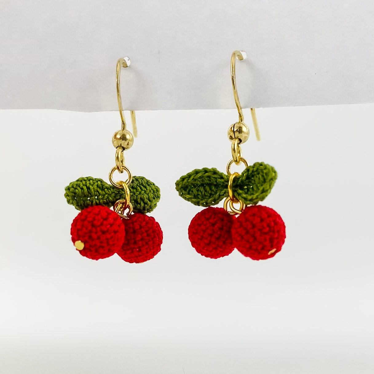Tiny and vibrant cherry earrings handmade with micro-crochet detailing.Feather-light and perfect for daily wear or gifting.