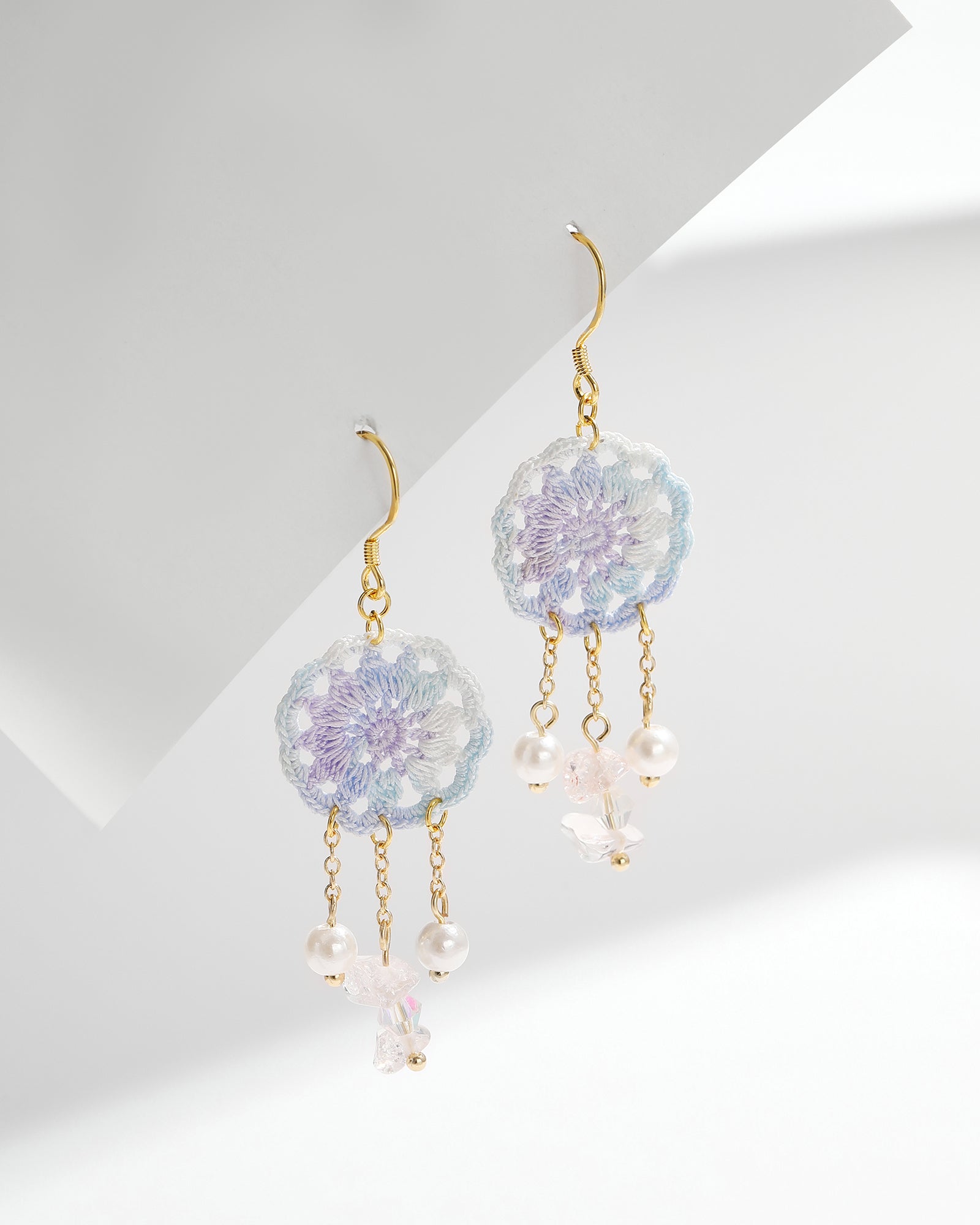 Delicate micro-crochet dreamcatcher earrings with fine lace details and a soft, airy finish. Lightweight, bohemian and perfect for everyday wear or gifting.