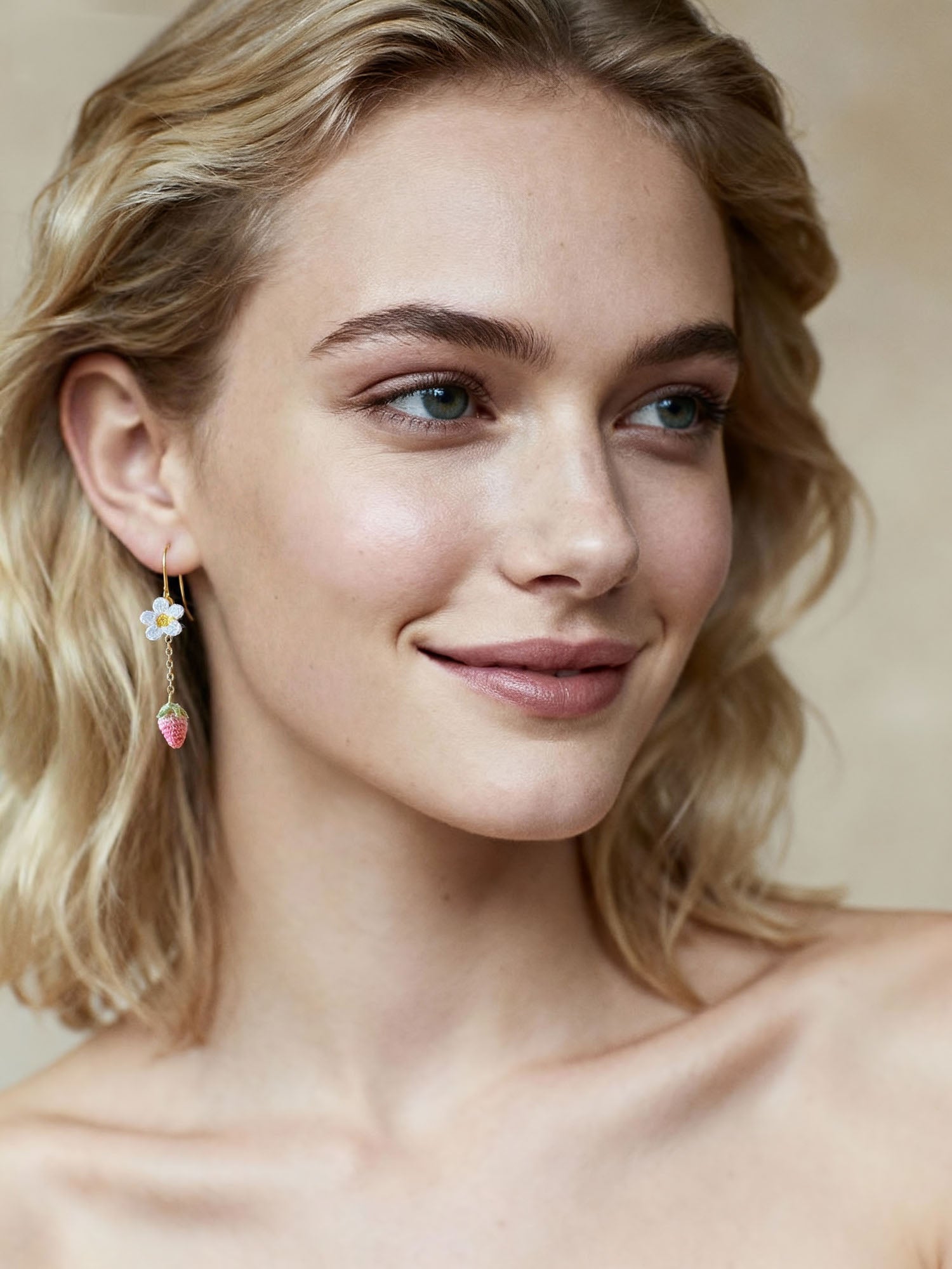 Tiny and vibrant pink strawberry earrings handmade with micro-crochet detailing.Feather-light and perfect for daily wear or gifting.