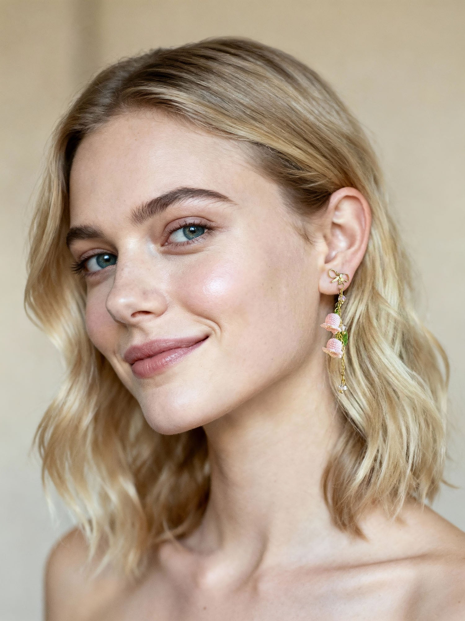Micro Crochet Earrings | Pink Lily of the Valley with Bow