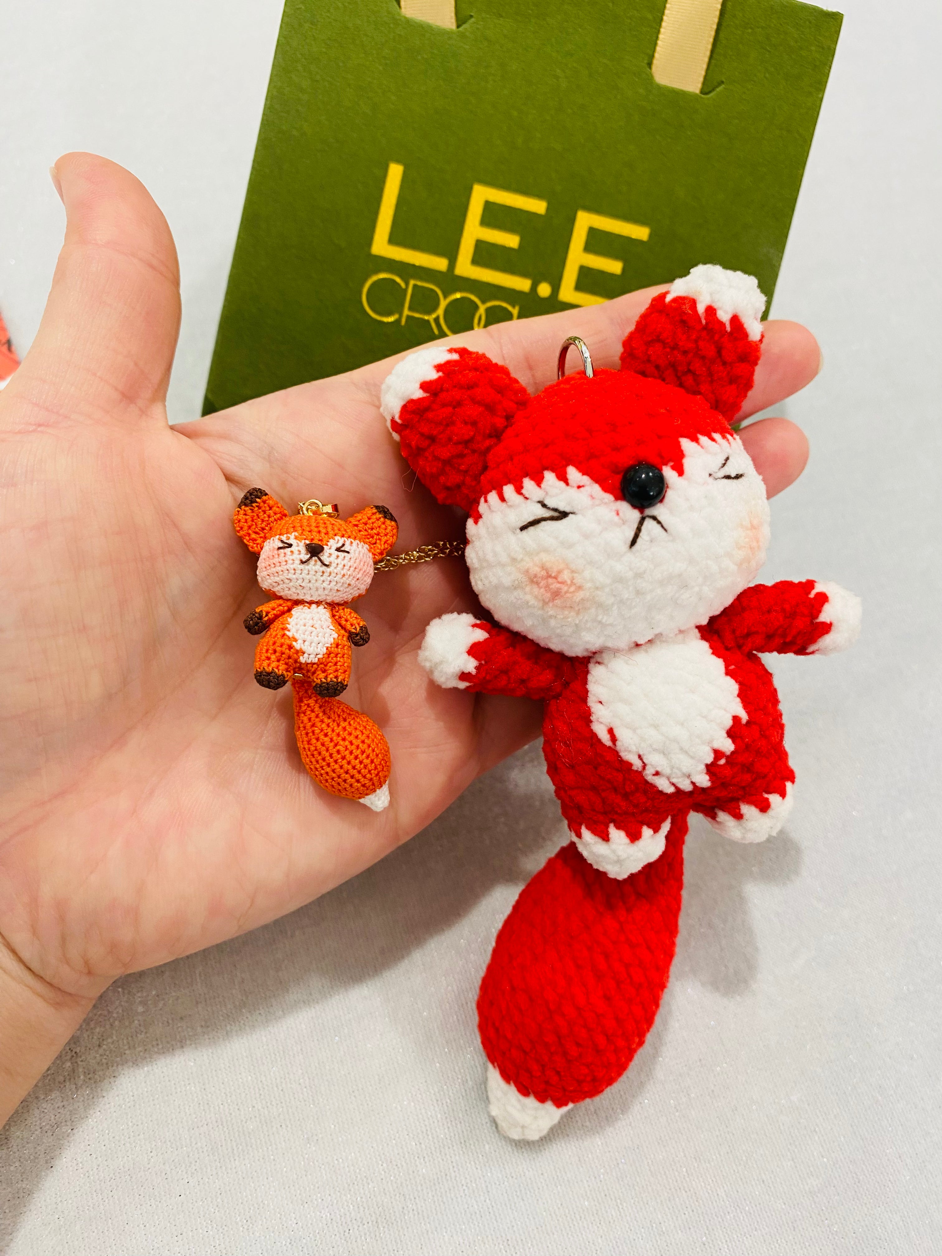 A tiny micro-crochet fox with a sweeping tail — delicate, charming and handcrafted in limited quantities.
