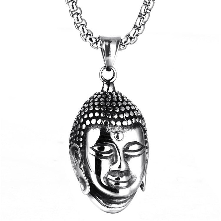 Buddha Head Pendant with 60cm Rounded Box Stainless Steel Chain.