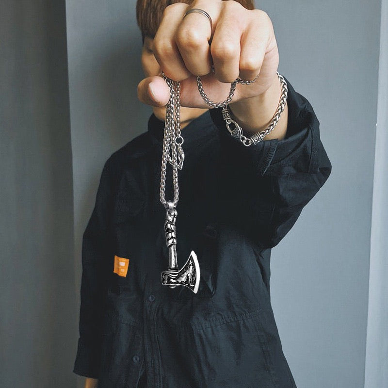 Viking Battle Axe Pendant with 60cm Rounded Box Stainless Steel Chain.
