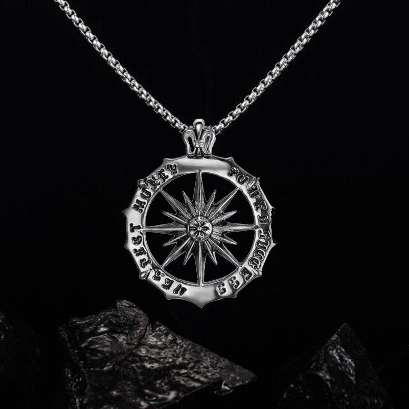 Sunburst Compass Pendant with 60cm Rounded Box Stainless Steel Chain.