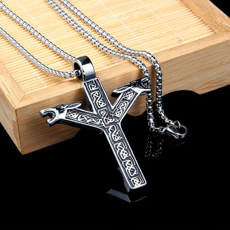 Two-headed Wolf Pendant with 60cm Rounded Box Stainless Steel Chain.